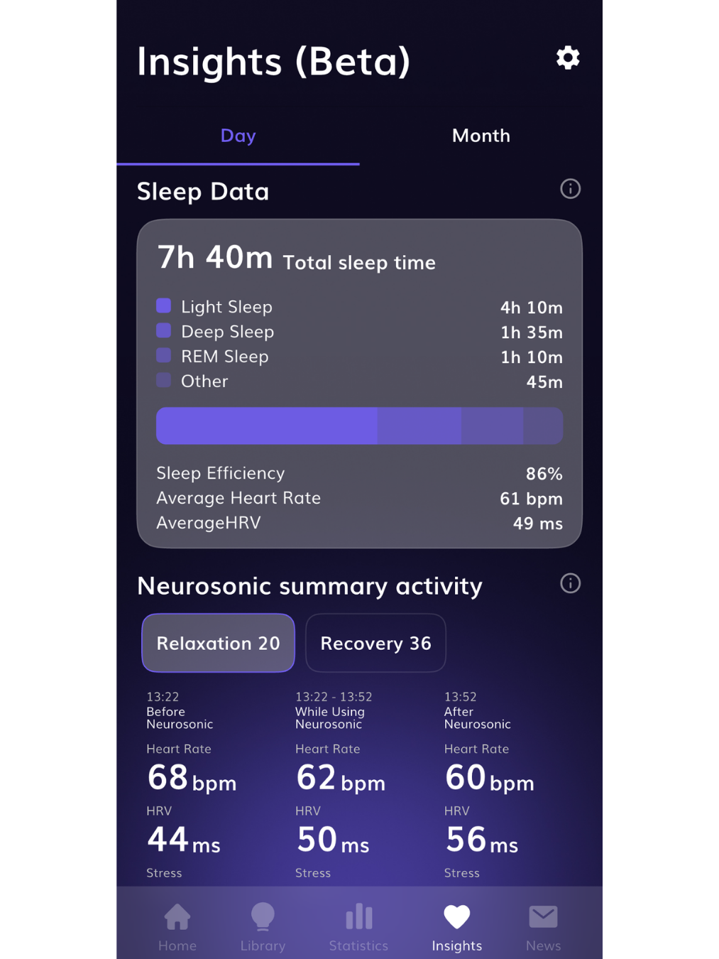 Neurosonic Insights helps you understand how sleep, stress, and recovery change in your everyday life, and how your Neurosonic use is reflected in your metrics.